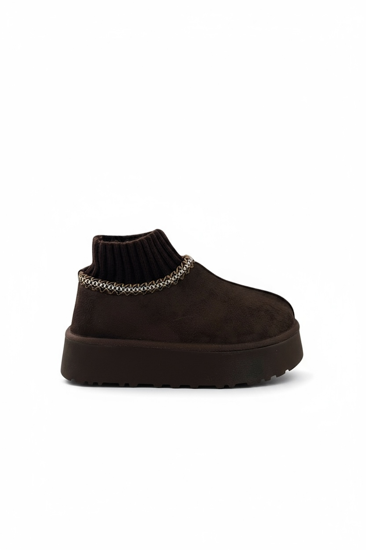 Henza Acı Kahve Süet Triko Detaylı Kürklü Bot