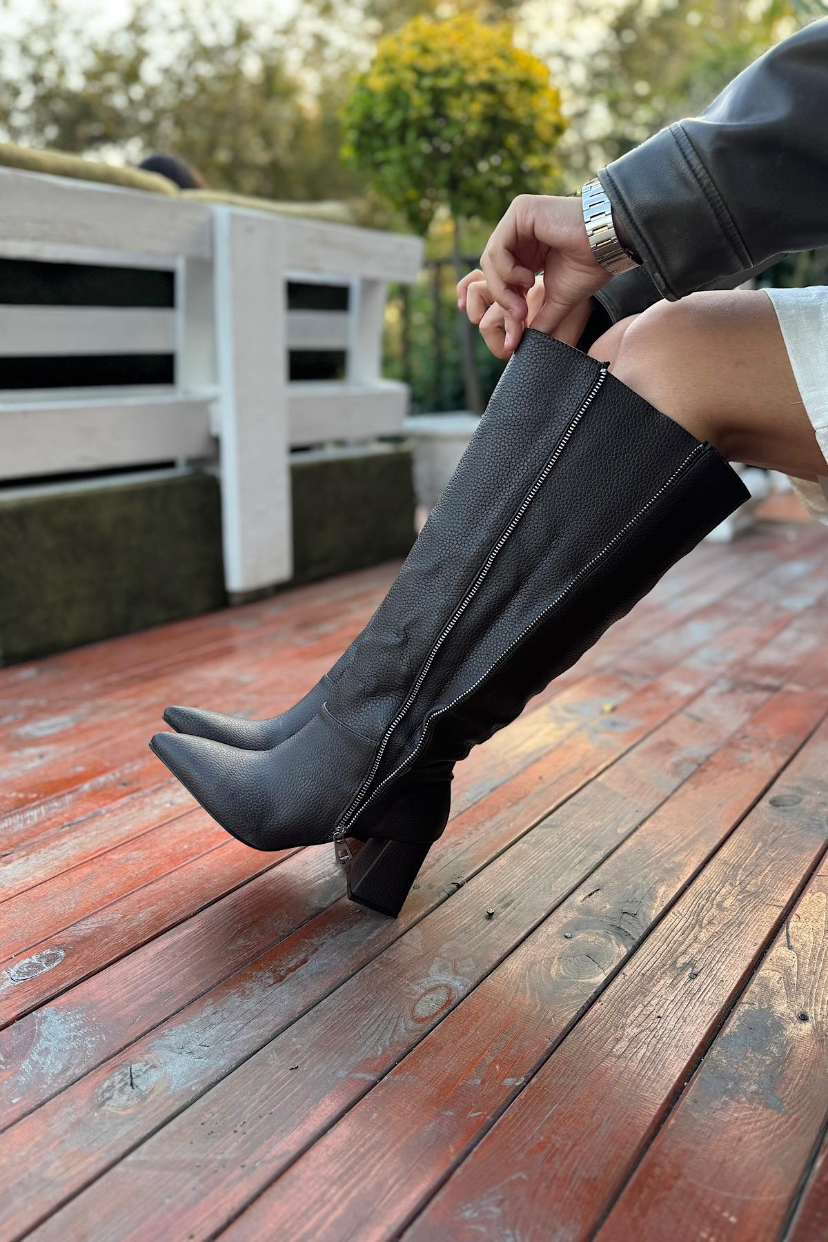Kalıp: Tam kalıp / Standart Malzeme: Suni Deri İç Malzeme: Tay tüy Topuk Yüksekliği:6 cm Uzunluk: 40 cm Çap: fermuar açık 48 cm