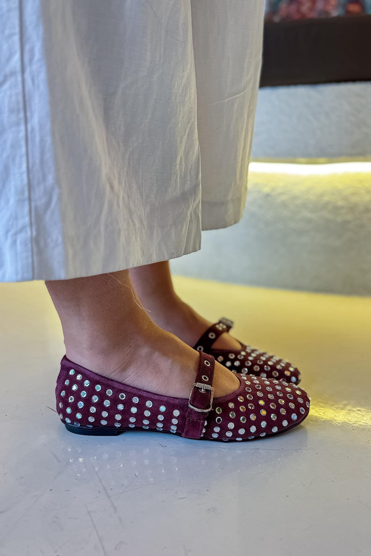 Klon Bordo Süet Taş  Detaylı Kadın Babet
