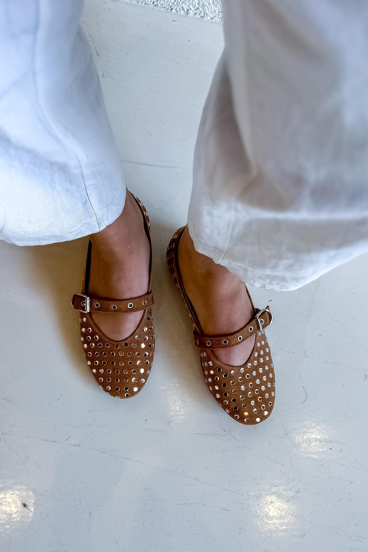 Klon Taba Süet Taş Detaylı Kadın Babet
