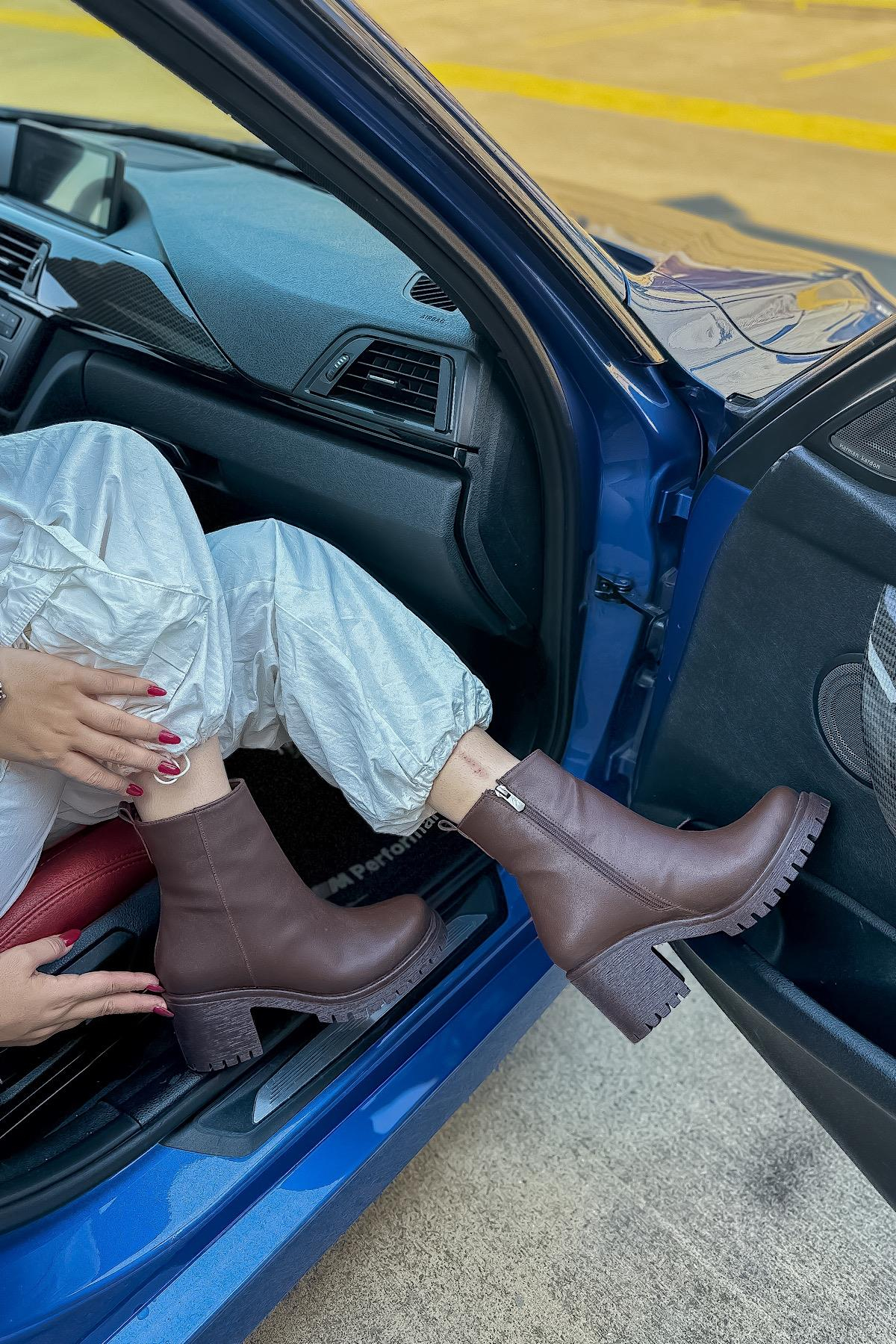 Luke Acı Kahve Cilt Fermuar Detaylı Kadın Bot
