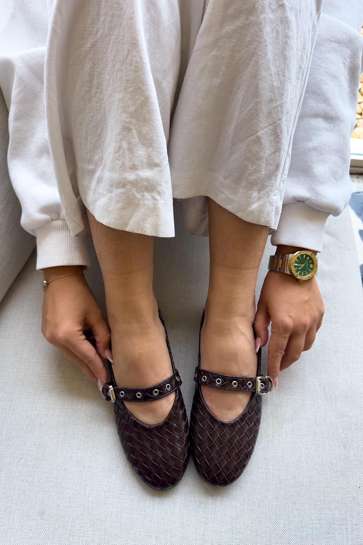 Nies Acı Kahve Cilt Örgü Detaylı Kadın Babet