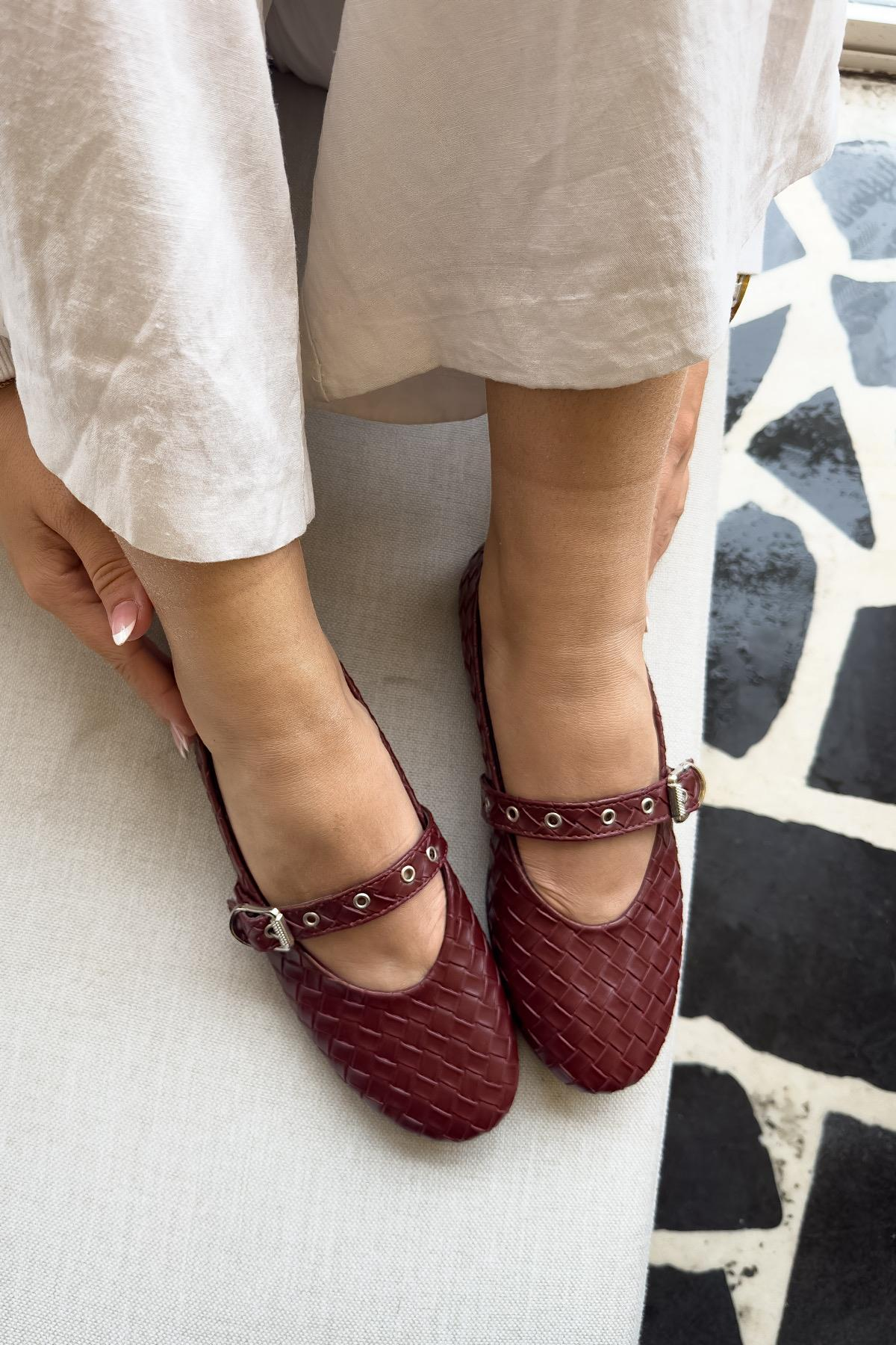 Nies Bordo Cilt Örgü Detaylı Kadın Babet