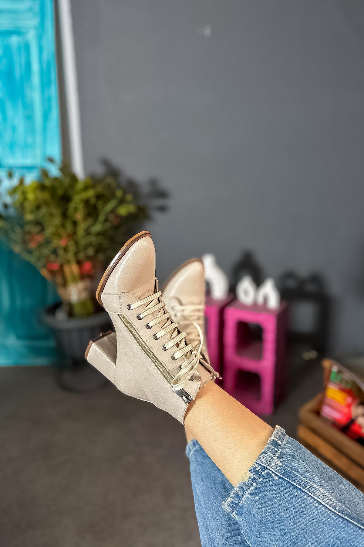 Piar Bej Cilt Çift Fermuar Detaylı Kadın Bot